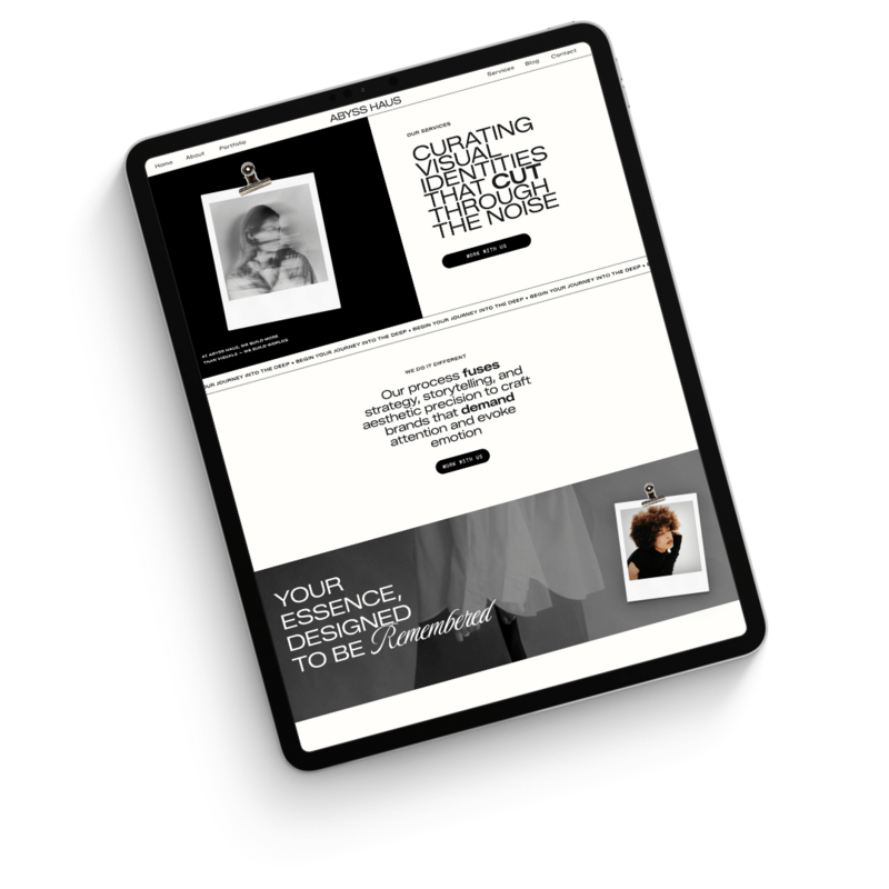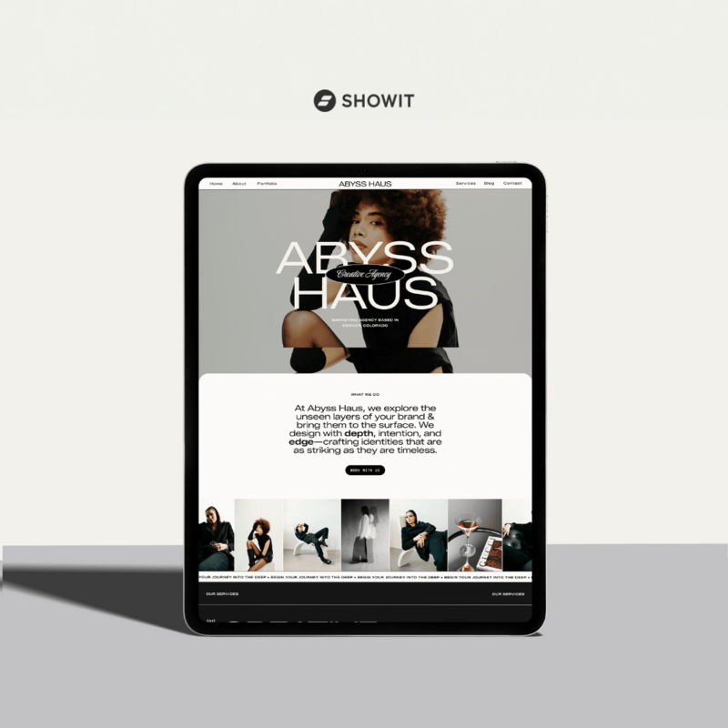This minimal, editorial Showit website template is designed for creatives who crave depth, contrast, and impact. This bold, yet refined, design merges high-end minimalism with smooth motion and intentional layout design. Perfect for creative agencies, brand designers, virtual assistants, and entrepreneurs, Abyss Haus was made for brands that want to feel luxurious, modern, and unforgettable.